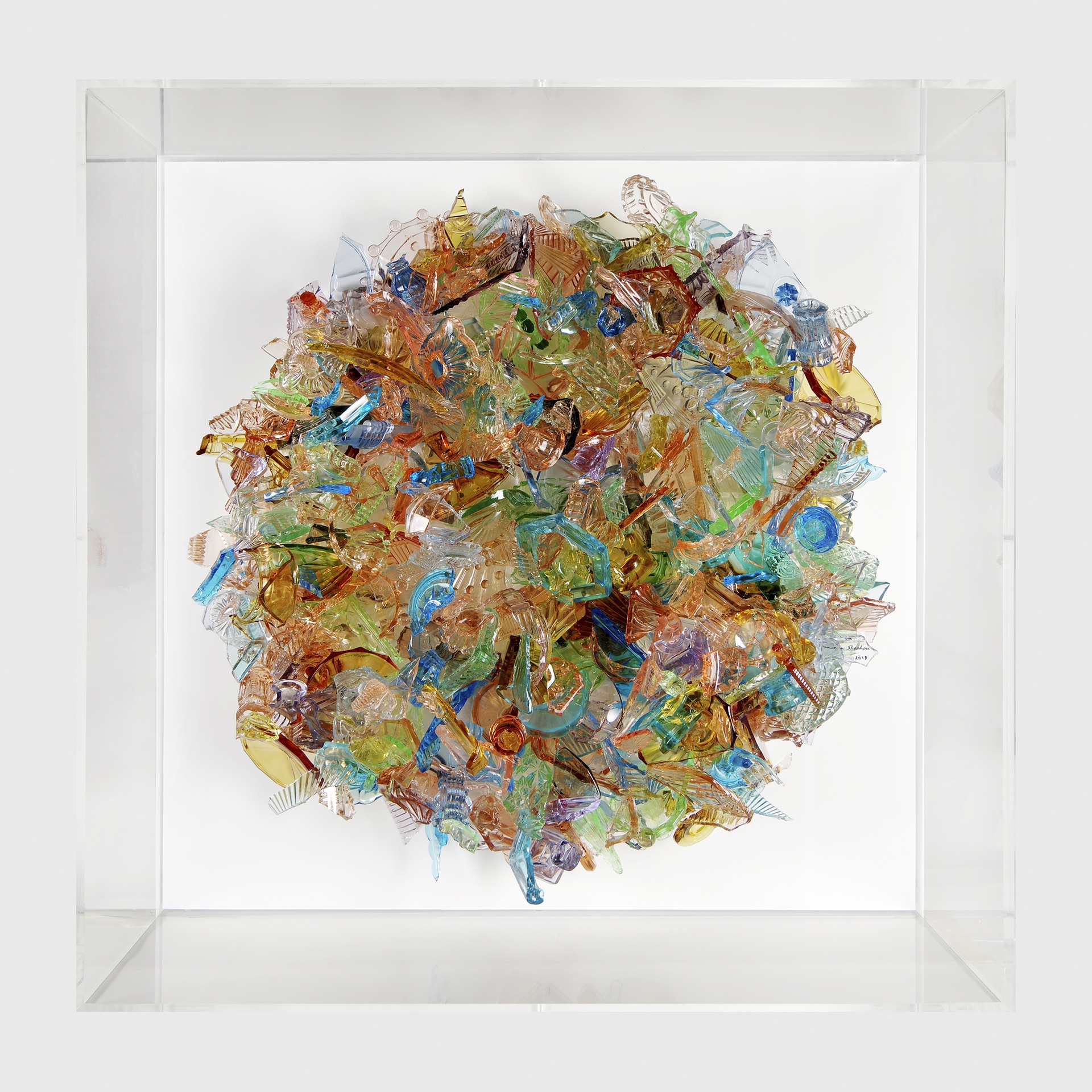 90x90x32Dcm | Russian Lomonosov Vintage Porcelain, Royal Grafton, Royal Stuart Jesmonite, Acrylic Paint, Aluminium Panel and Perspex Box | 2018