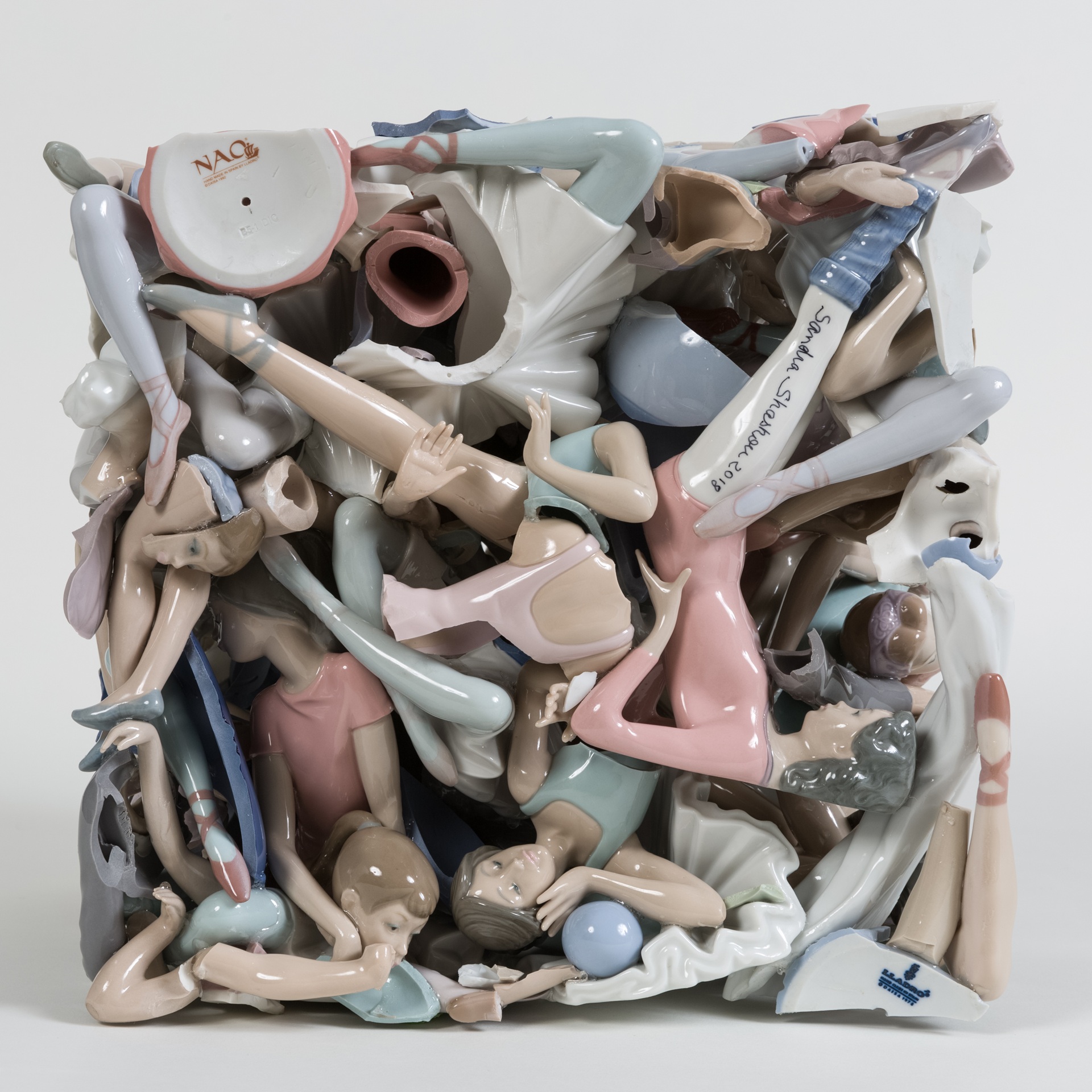 Complex and intricate, exuberant and elegant, Sandra Shashou’s new body of work, comprises of arrangements of smashed fragments of vintage fine bone china tea sets, Russian Lomonosov porcelain, Spanish Lladro and Nao ballerina figurines or German bisque Kaiser nude, dating back to the 1940s, 50s and 60s.
