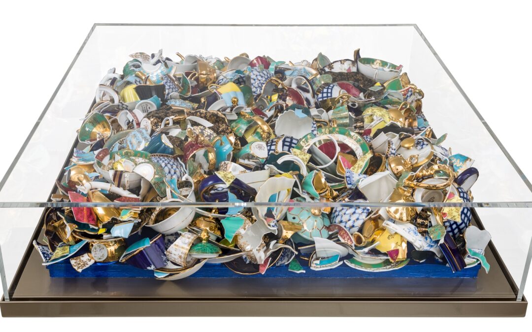 Sandra Shashou’s new body of work, comprising of arrangements of smashed fragments of bone china tea sets, oscillates between modalities of dissolution and reformulation, order and rupture, and historical eras.