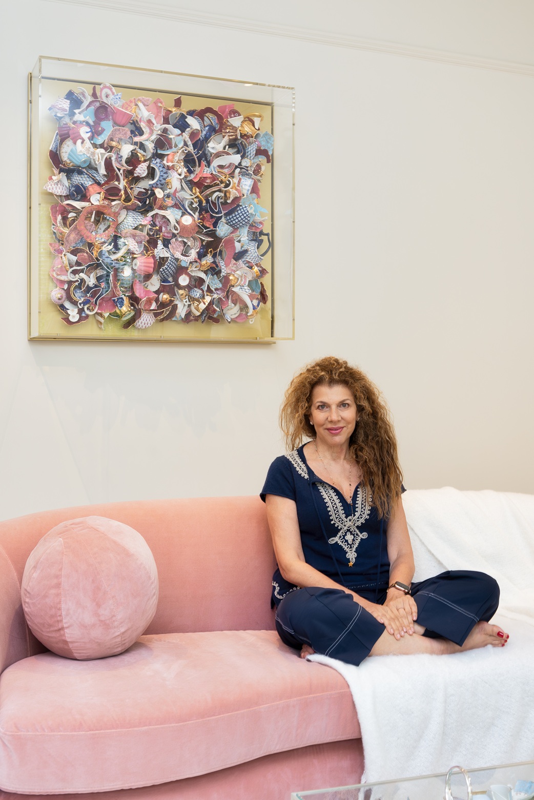Shashou brings these tea sets back to her studio and using a small hammer she shatters, punctures, chips and fragments. And yet the shapes of the original crockery are somehow preserved and repurposed in her intricate constructions. The curves of the broken tea sets undulate across simple rectangular surfaces, or swirl around rotundas with a baroque flamboyance. In some the pieces lock tightly together as if part of some giant Cubist puzzle, in other shards seem to be caught in the freeze frame of a constructivist explosion. Her chromatically rich, harmonious works match crimsons, mustard yellows and pinks, or mauve, turquoise and blue. Set in a gold or white ground, Shashou’s fragments unfold like Jackson Pollock’s all-over paintings – only shattered, not splattered.